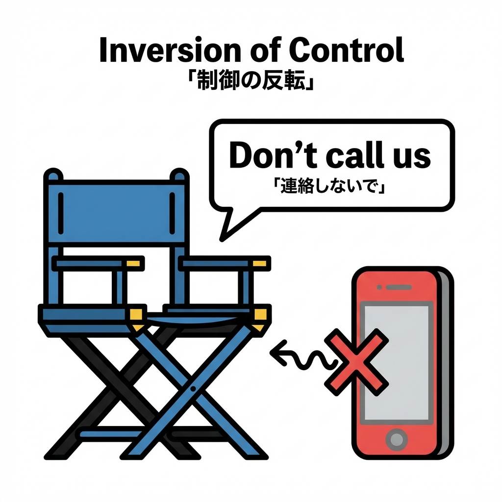 これがまさに “Don't call us, we'll call you”(呼ぶのはそっち)ってやつ🌀 IoCは「Hollywood Principle」って説明されることもあるよ🎬 (ウィキペディア)