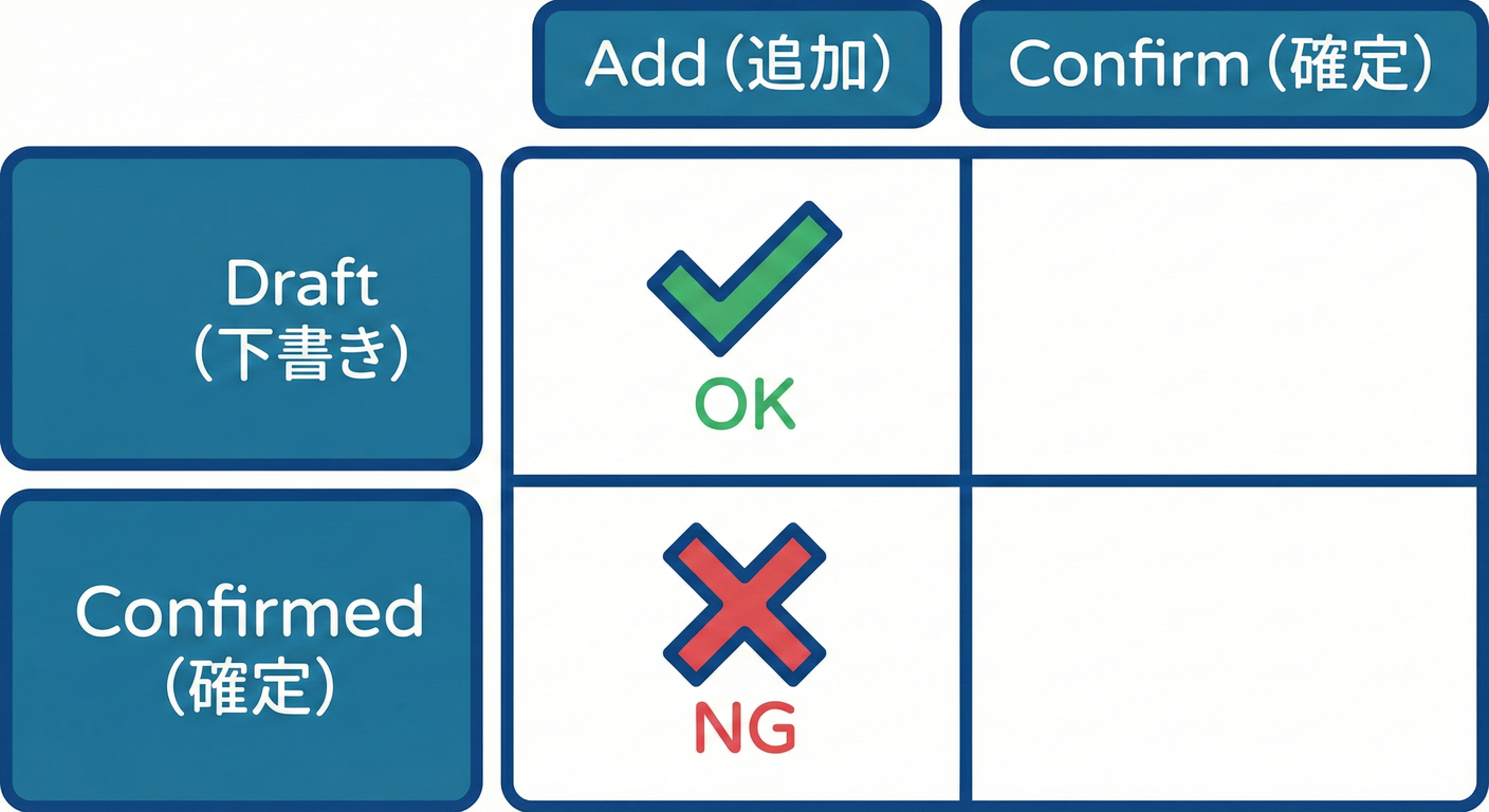- 注文が 確定(Confirmed)したら、明細を追加・削除できない 🚫🧾