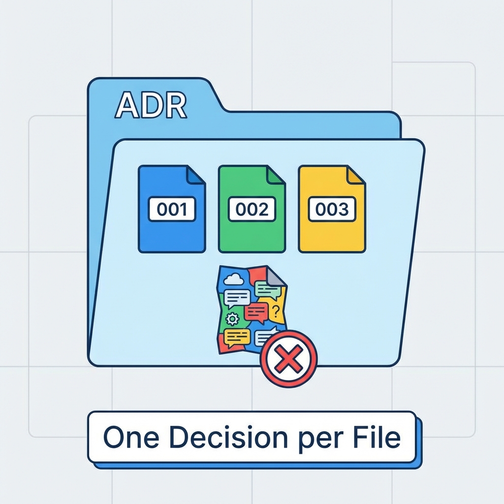 ADRは 1つの判断を、1ファイルに分ける のが基本です📌 判断が2つ混ざると、あとで読むときに「結局どれの話?」ってなりがち😵💫