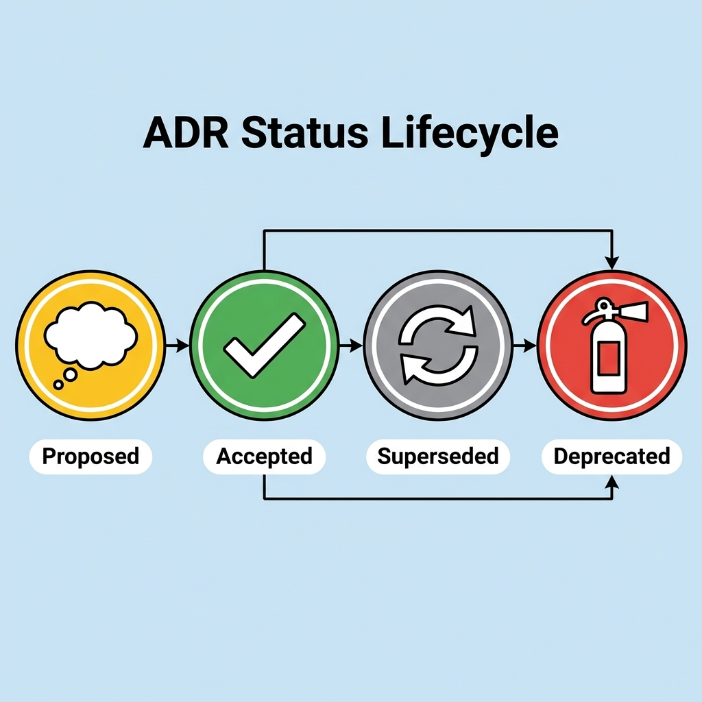 ※ “あとで新ADRで置き換える”運用が基本なので、Superseded は頻出です🔁 (architectviewmaster.com)