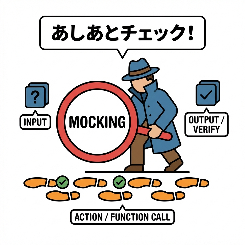 - モックは **「呼ばれ方(回数・引数)を検証するニセモノ」**🕵️♀️