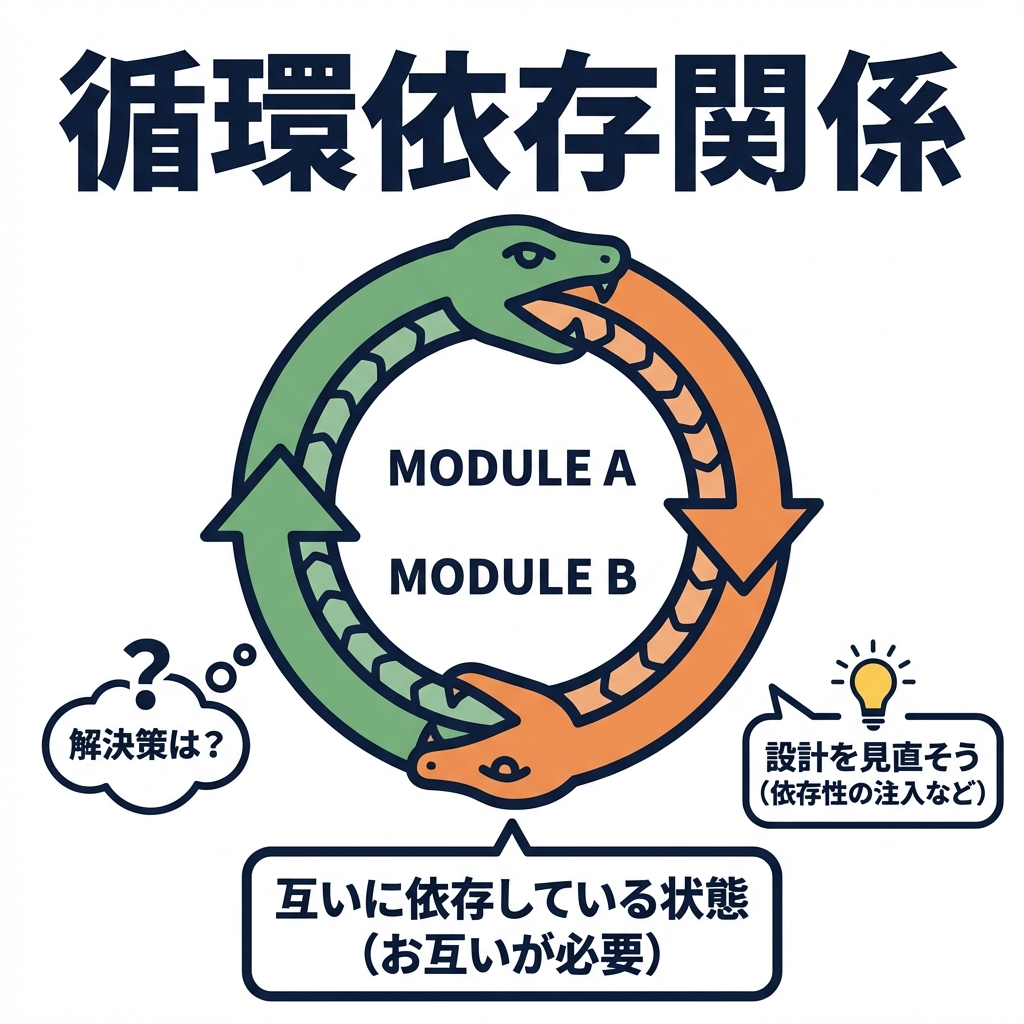 「設計的には循環じゃないのに、生成タイミングだけが原因」みたいな時は 遅延して必要になった瞬間に作ると回避できることがあるよ⚠️