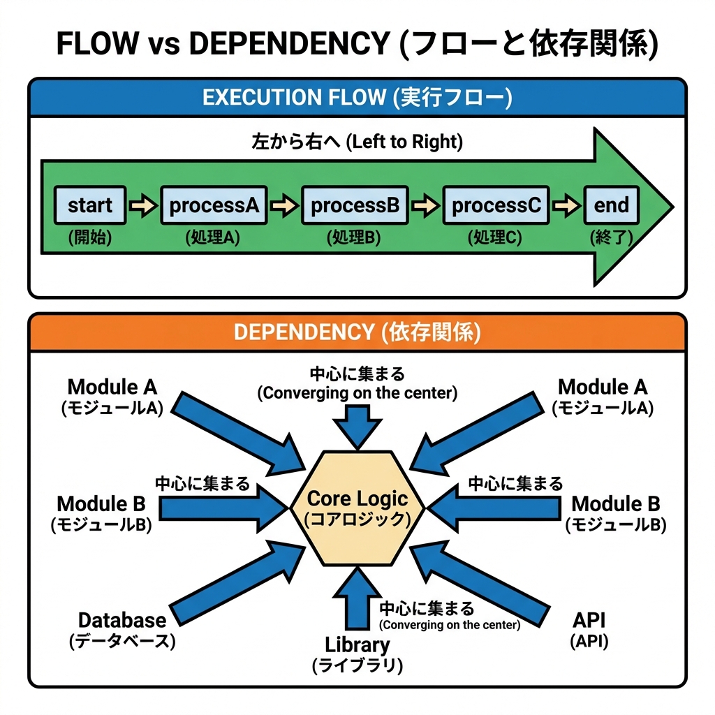 「依存の向き」と「実行の流れ」を図で分ける🧭✨
